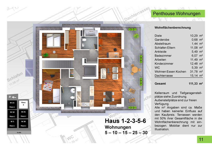 In Planung befinden sich 24 Wohungen und 6 Penthouse Wohnungen.